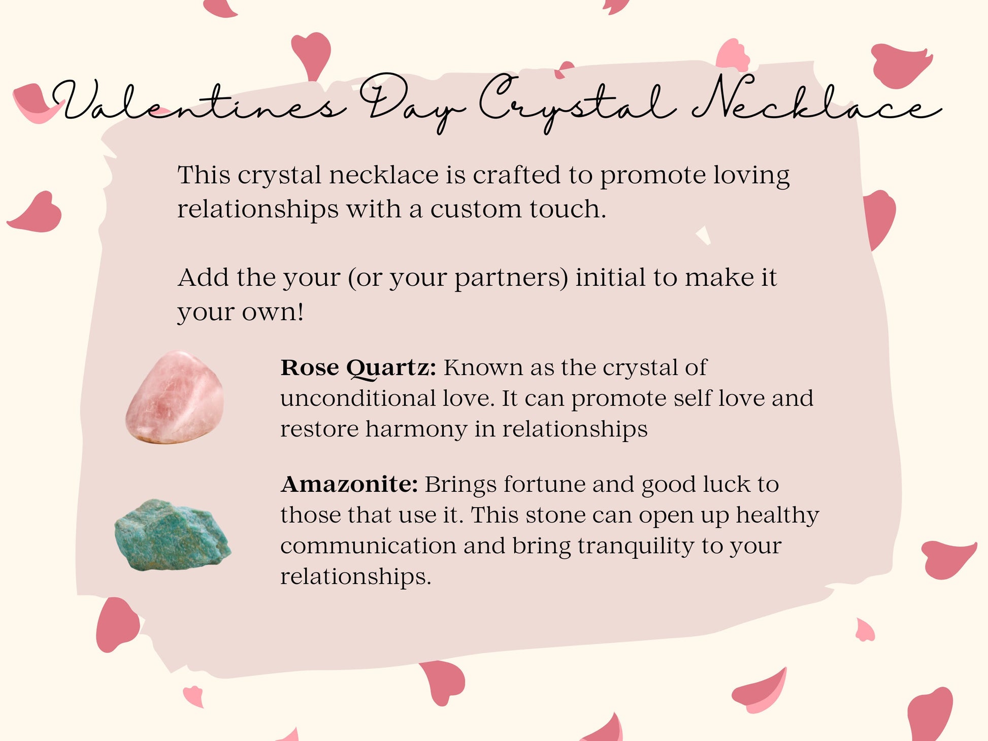 These crystal necklaces are designed specifically with crystals that support love, healing and happiness within oneself and within relationships. This necklace features two rose quartz crystals and two amazonite crystals