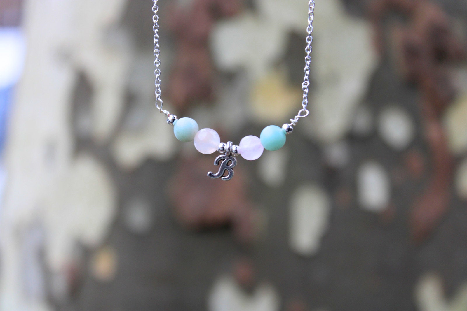 Custom Initial Charm Necklace: Rose Quartz & Amazonite