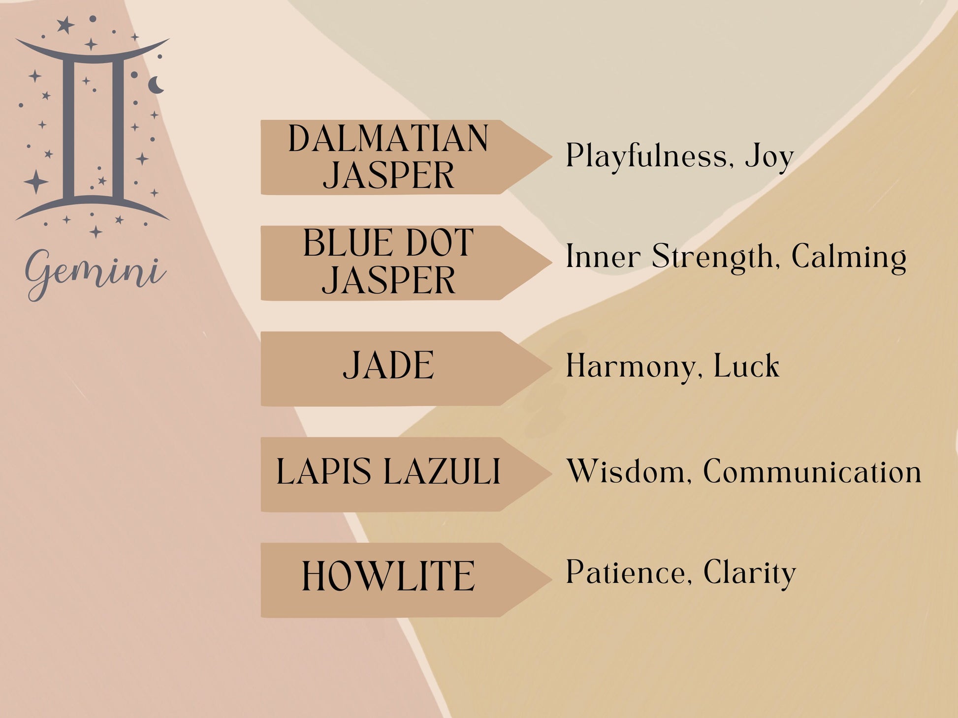 This necklace features 5 different crystals all of which aid Geminis in everyday life.