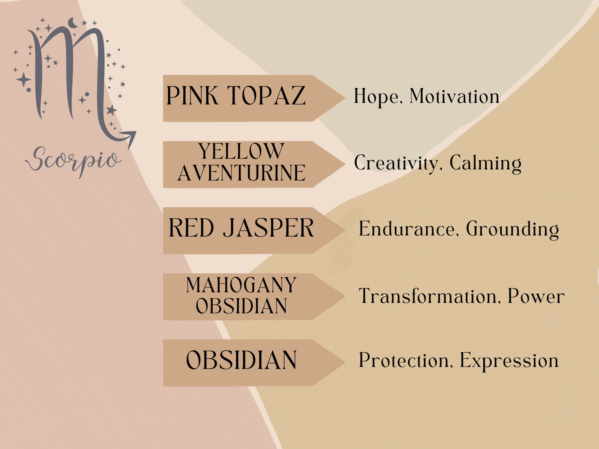 This necklace features 5 different crystals all of which aid Scorpio in everyday life.
