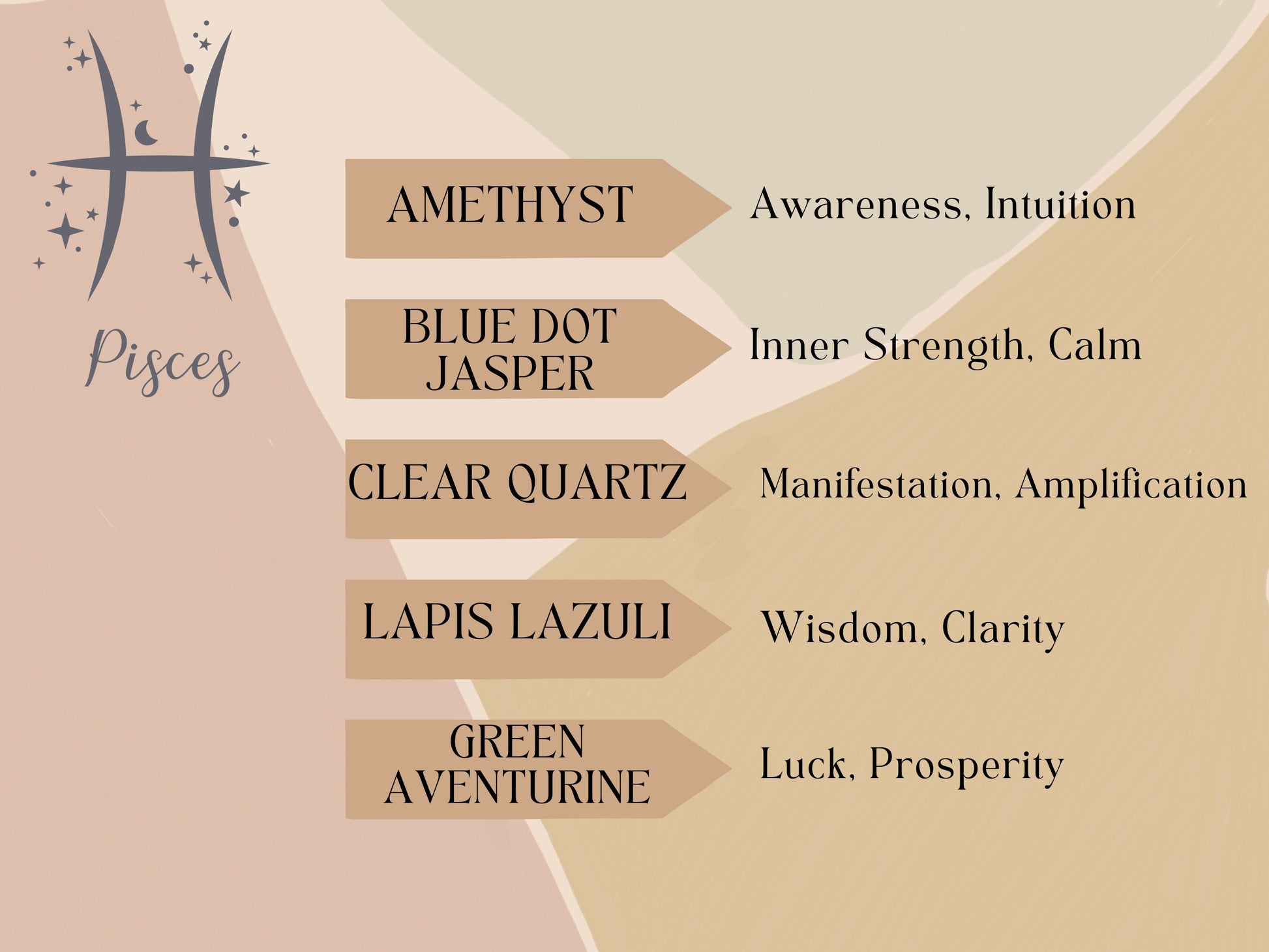 This necklace features 5 different crystals all of which aid Pisces in everyday life.
