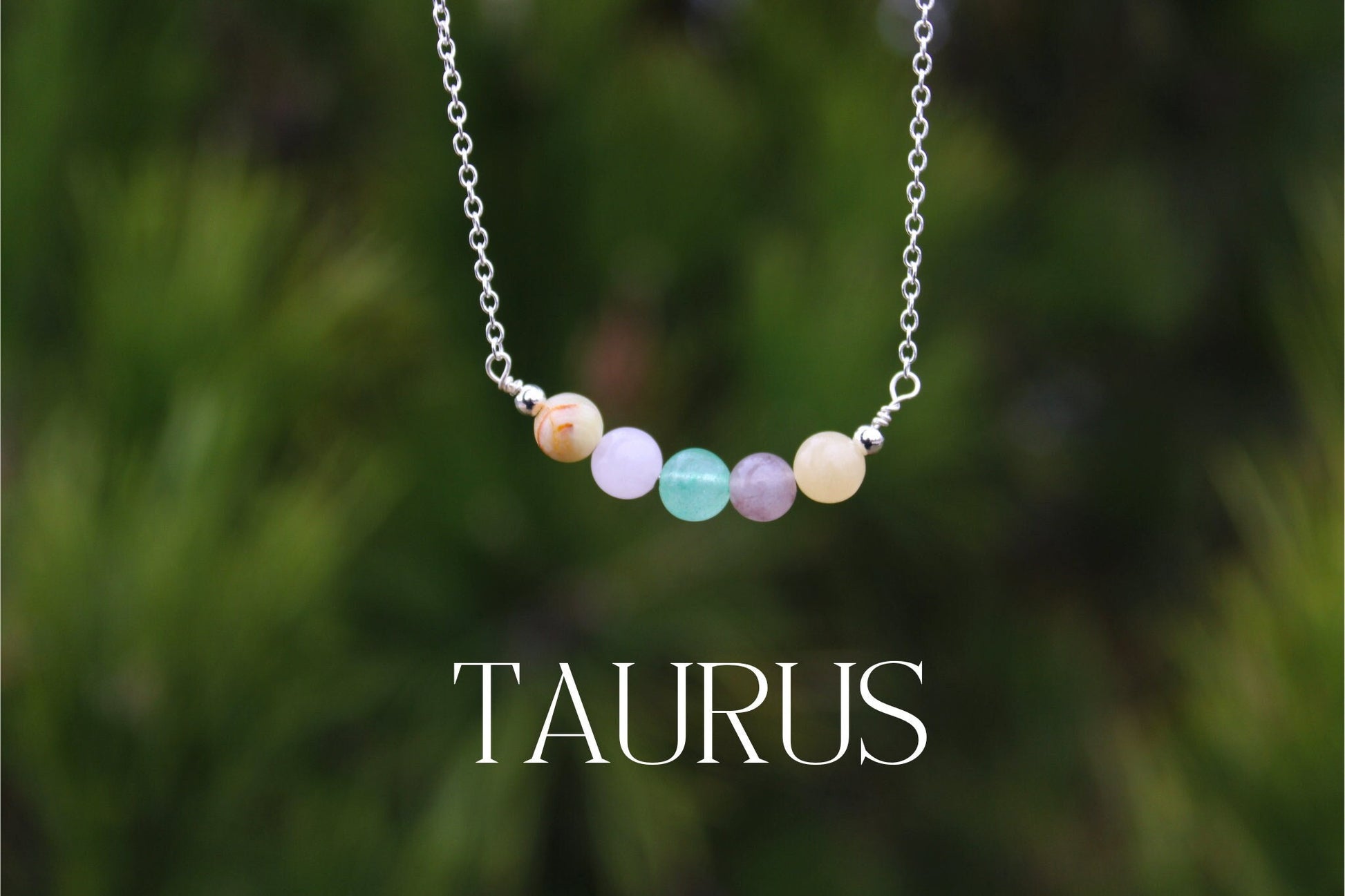 This beautiful Taurus inspired crystal necklace is made to order with either a silver or gold chain. This necklace features 5 different crystals all of which aid Taurus in everyday life.